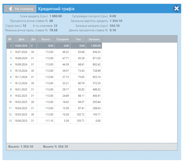 Попередження про можливі наслідки для споживача в разі користування споживчим кредитом або невиконання ним обов'язків згідно з договором про споживчий кредит, уключаючи прострочення виконання зобов'язань зі сплати платежів, а також розмір неустойки, процентної ставки, інших платежів, які застосовуються чи стягуються в разі невиконання зобов'язання за договором про споживчий кредит 1. Споживач несе цивільно-правову відповідальність у вигляді додаткових процентів річних за неналежне виконання грошового зобов'язання (ч.2 ст.625 Цивільного кодексу України). У разі порушення Позичальником строків платежів за цим Договором по сплаті кредиту та/або нарахованих процентів понад 10 календарних днів, Кредитодавець має право нарахувати Позичальнику додаткових 36% (тридцять шість процентів) річних на суму несвоєчасно сплачених кредиту та/або нарахованих процентів. Ці проценти нараховуються за кожен день порушення Позичальником строків платежів. У разі порушення Позичальником строків платежів за цим Договором по сплаті кредиту та/або нарахованих процентів понад 10 календарних днів, Кредитодавець має право нарахувати Позичальнику пеню в розмірі додаткових 12% (дванадцять процентів) річних на суму несвоєчасно сплачених кредиту та/або нарахованих процентів, за кожен день прострочення. При цьому, пеня нараховується з дотриманням наступних правил: - розмір пені за невиконання зобов’язання щодо повернення кредиту та процентів за цим Договором не може перевищувати подвійної облікової ставки Національного банку України, що діяла у період, за який сплачується пеня; - розмір пені не може бути більшим за 15 відсотків суми простроченого платежу; - сума пені, нарахована за порушення зобов’язань Позичальником за цим Договором, не може перевищувати половини суми, одержаної Позичальником за цим договором, і не може бути збільшена за домовленістю Сторін. 2. Порушення виконання зобов'язання щодо повернення споживчого кредиту може вплинути на кредитну історію та ускладнити отримання споживчого кредиту надалі. 3. Кредитній спілці забороняється вимагати від споживача придбання будь-яких товарів чи послуг від фінансової установи або спорідненої чи пов'язаної з ним особи як обов'язкову умову надання споживчого кредиту. 4. Для прийняття усвідомленого рішення щодо отримання споживчого кредиту на запропонованих умовах споживач має право розглянути альтернативні різновиди споживчих кредитів та фінансових установ. 5. Кредитна спілка має право вносити зміни до укладених зі споживачами договорів про споживчий кредит тільки за згодою сторін. 6. Споживач має можливість відмовитися від отримання рекламних матеріалів засобами дистанційних каналів комунікації. 7. Можливі витрати на сплату споживачем платежів за користування споживчим кредитом залежать від обраного споживачем способу сплати. 8. Ініціювання споживачем продовження (лонгації, пролонгації) строку погашення споживчого кредиту (строку виконання грошового зобов'язання)/строку кредитування/строку дії договору про споживчий кредит не передбачено. |